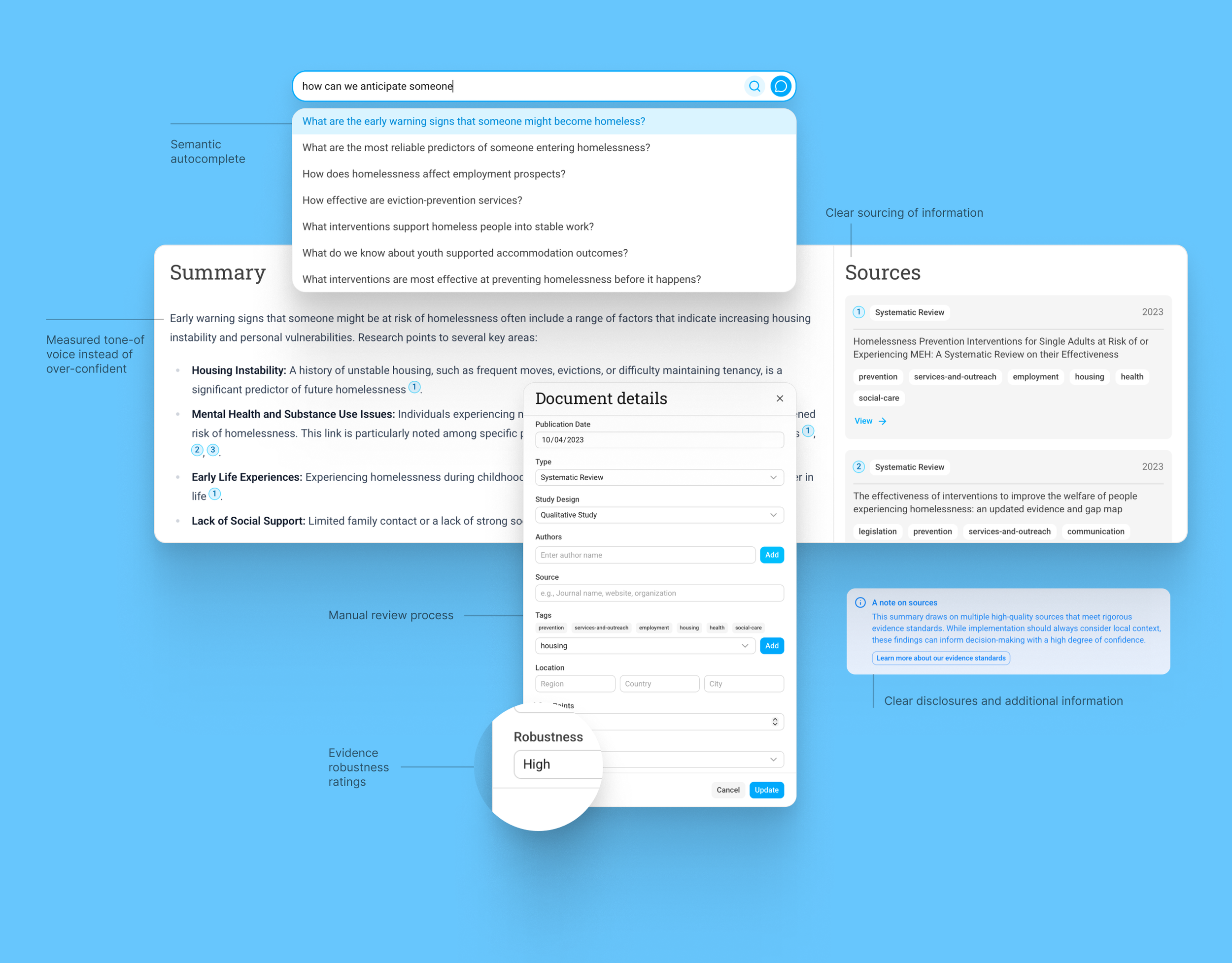 To close out the year, I led a 8-week AI Product Sprint with the Centre for Homelessness Impact. We designed and built the alpha of an AI research platform to help decision makers find the right evidence for the right problem – inside long, academic PDFs