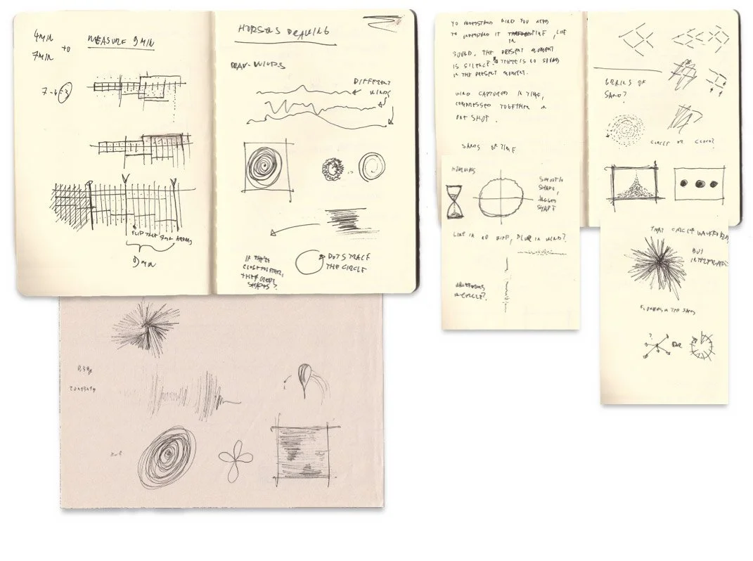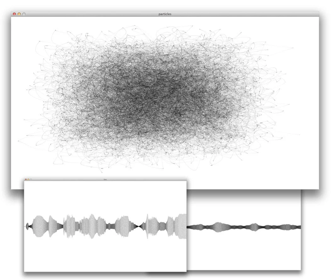 First interactive sketches and procedural drawings using Processing were created. Pencil-like aesthetics and autonomous drawing was explored. Initially Perlin noise was used instead of actual waveforms.